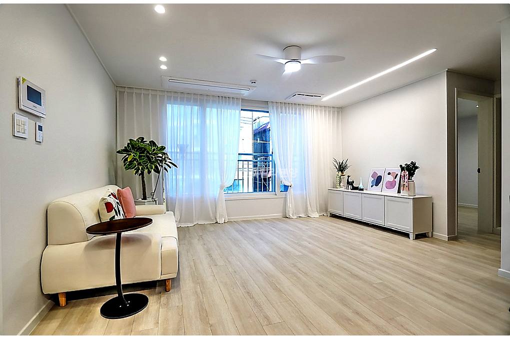 🛋️ 실링팬으로 쾌적함을 더한 개방형 거실