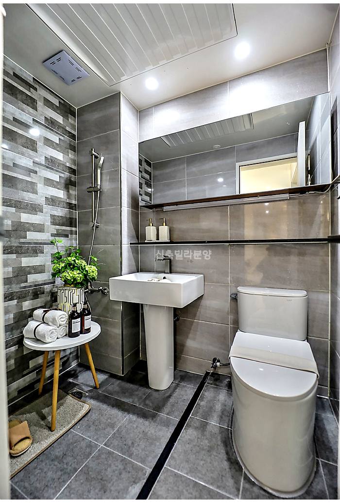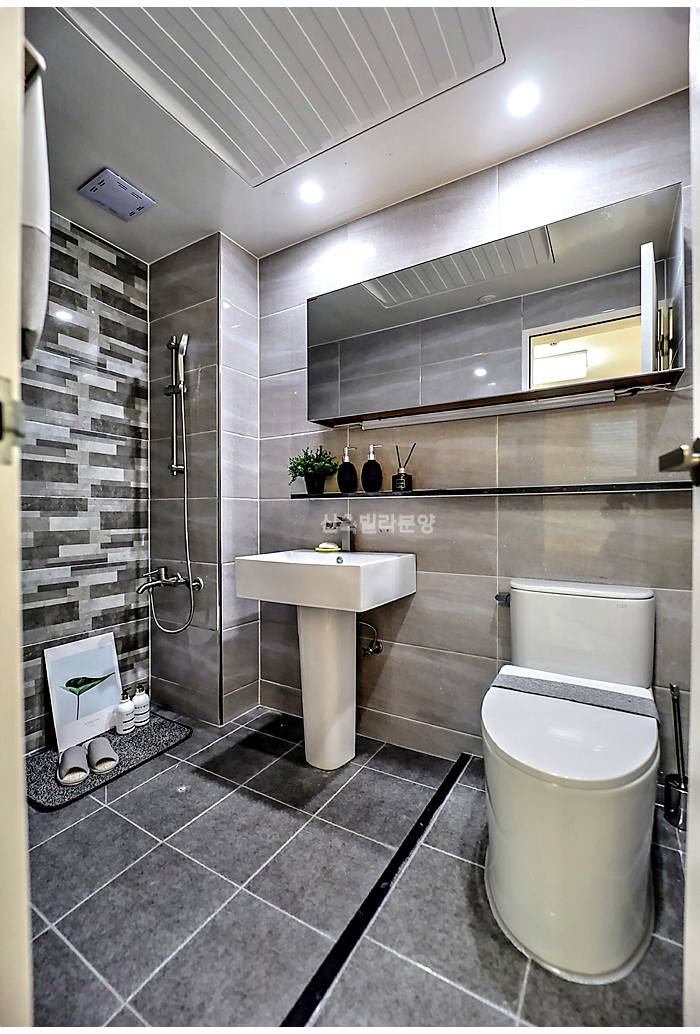 마전동신축빌라 욕실은 한마디로 군더더기가 없네요. 메인 욕실과 안방 욕실 두 개가 있어서 바쁜 아침 시간에도 겹치지 않아 좋죠.