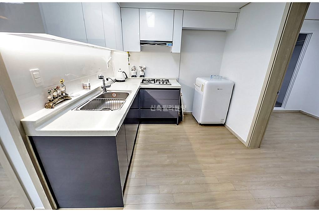 군포신축빌라 주방 동선, 이거 정말 중요하잖아요. 여기는 거실과 주방이 분리된 구조라 살림하시는 분들이 좋아하실 거예요.