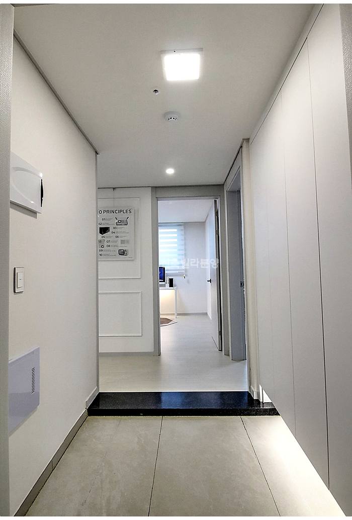 안양동빌라매매 현관을 열고 들어서니 세련된 화이트 톤의 인테리어가 집 전체를 훨씬 넓고 밝아 보이게 만들어 주었습니다.