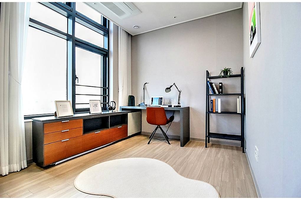붙박이장이 갖춰진 방은 네모반듯한 구획이라 어떤 가구 배치든 낭비가 없어요.