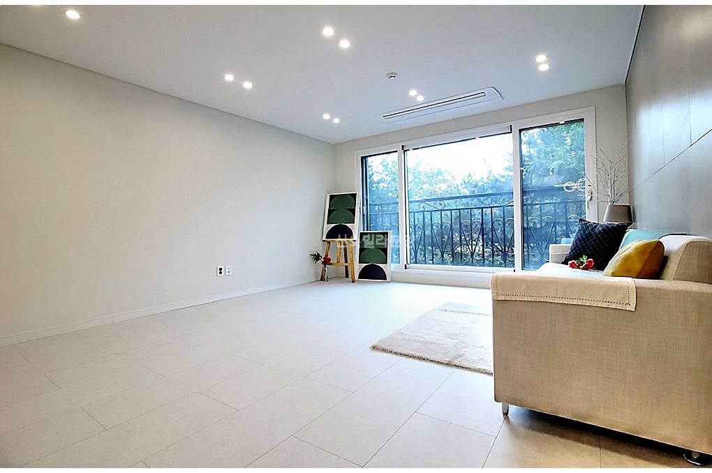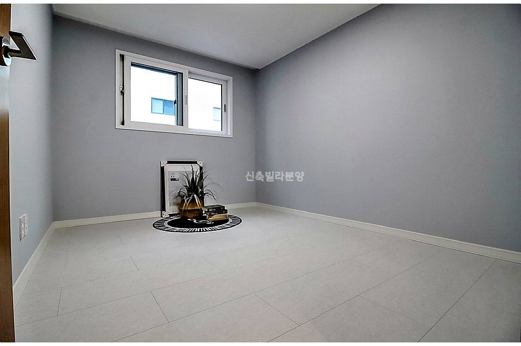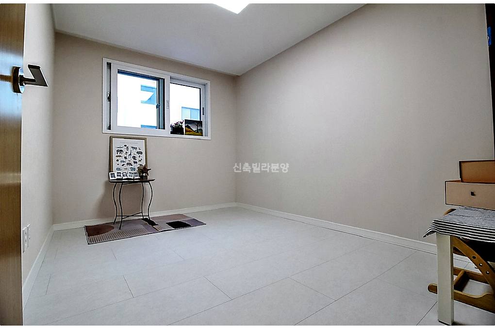 포천신축빌라 실내로 들어서면 탁 트인 대형 창문을 통해 들어오는 풍부한 채광이 마음을 편안하게 해줍니다. 거실 창밖으로는 푸른 나무들이 펼쳐져 있어 도심 속에서도 자연의 정취를 느낄 수 있습니다. 포천 3룸 분양 현장 중에서도 인테리어 감각이 돋보이는데, 차분한 베이지 톤과 고급스러운 무광 포세린 타일 바닥이 조화를 이루어 모던한 분위기를 완성합니다. 천장에는 시스템 에어컨이 빌트인되어 공간을 더 넓게 활용할 수 있습니다.