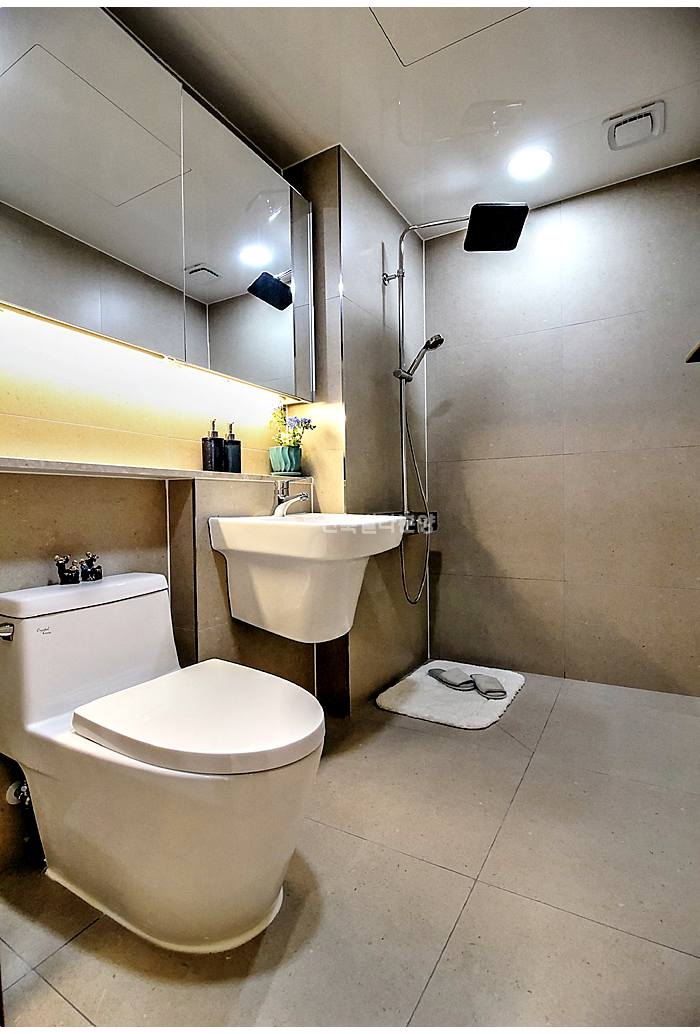 선단동신축빌라 주방은 효율적인 동선을 보장하는 ‘ㄷ’자 형태로 설계되었습니다. 세련된 우드와 화이트 톤의 조합은 주방을 더욱 따뜻하게 만들어주며, 냉장고 두 대가 들어갈 넉넉한 자리와 풍부한 상하부 수납장이 마련되어 있습니다. 또한, 안방에는 파우더룸이나 드레스룸으로 꾸밀 수 있는 여유 공간이 있고, 대형 세탁실과 베란다가 별도로 있어 계절 용품이나 생활 짐을 보관하기에 최적입니다.