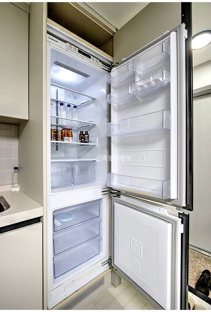 빌트인 냉장고가 깔끔하게 매립되어 있어