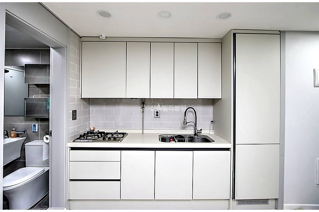 빌트인 냉장고가 깔끔하게 매립되어 있어