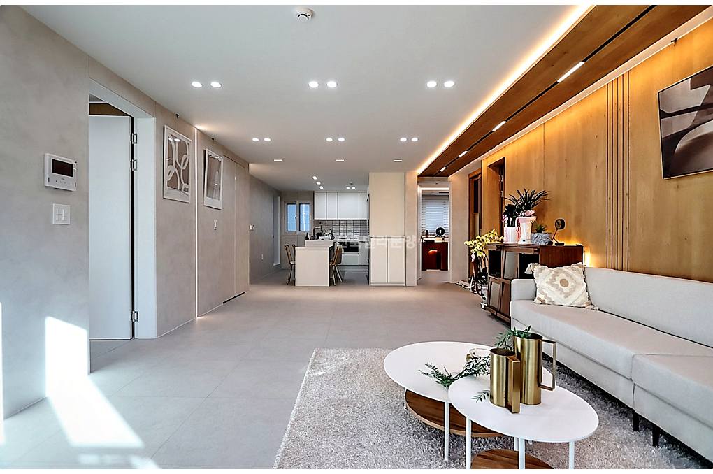 현관문 열고 거실로 딱 들어서는데, 와, 분위기가 정말 고급스럽더라고요.