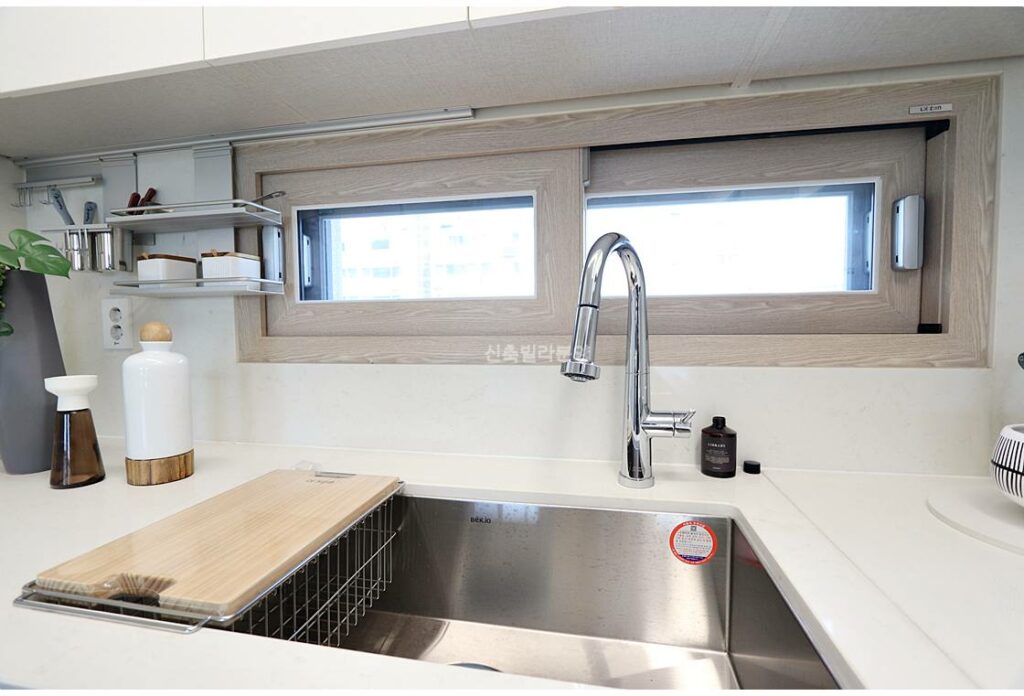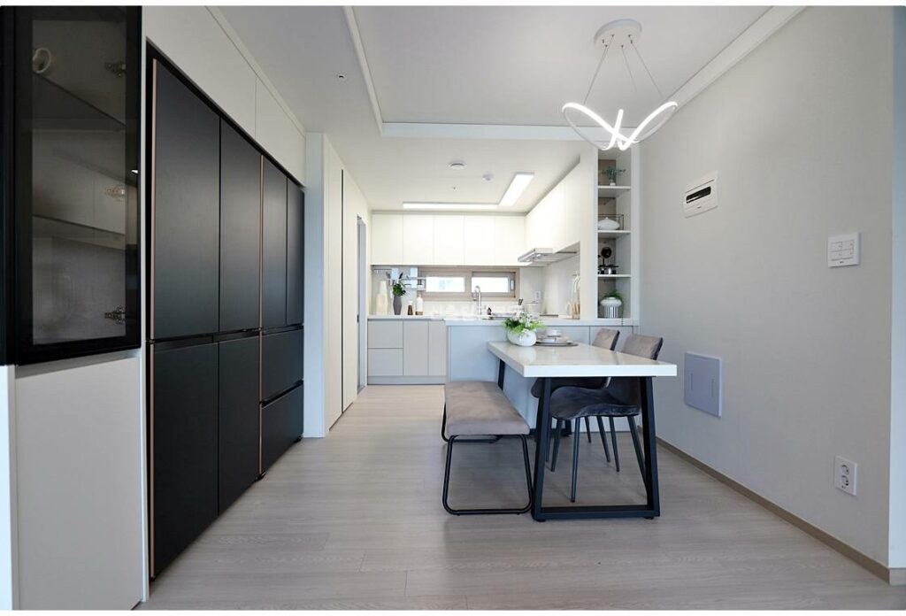 강동구신축빌라 방에 시스템에어컨이 기본 장착되어 있으며, 천장에는 공기순환시스템이 설치되어 사계절 쾌적함을 유지합니다. 주방에는 인덕션과 환기창이 갖춰져 있고, 냉장고 2대를 수납할 수 있는 전용 공간도 마련되어 있습니다. 메인 욕실에는 샤워부스와 비데가 옵션으로 설치되며, 세탁실에는 세탁기와 건조기까지 완비되어 입주 즉시 생활이 가능합니다.