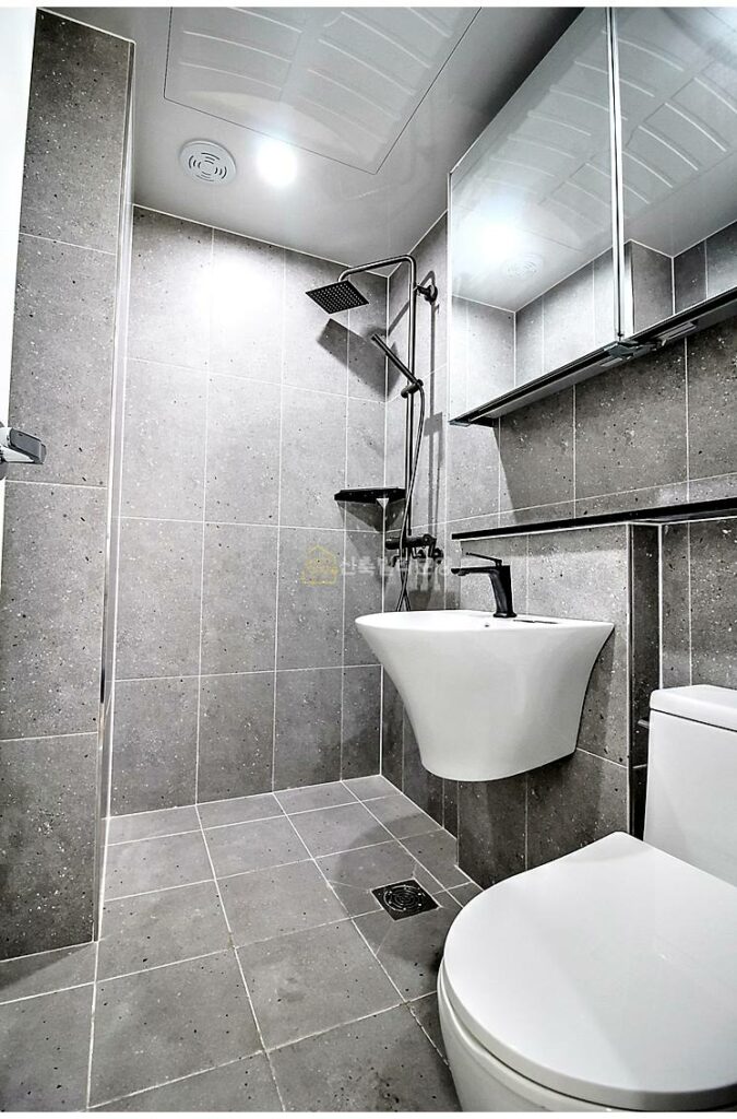 바닥은 미끄러지지 않는 특수 타일로 마감되어 있어서 물기가 있어도 안전해요. 어린이나 어르신이 있는 가정에서 특히 안심하고 사용할 수 있답니다.