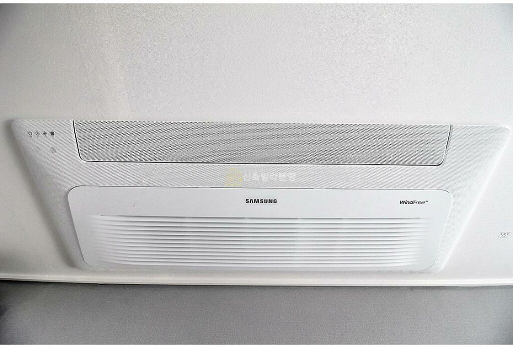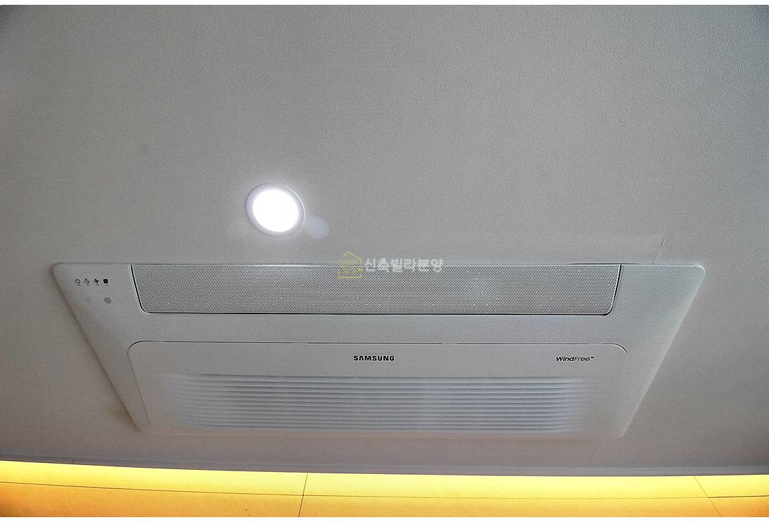 4명이 앉을 수 있는 큰 소파를 놓고도 TV와의 거리가 충분해서 눈이 편안해요. 천장에 매립된 냉난방 시스템으로 사계절 쾌적한 온도를 유지할 수 있죠.