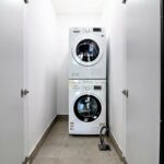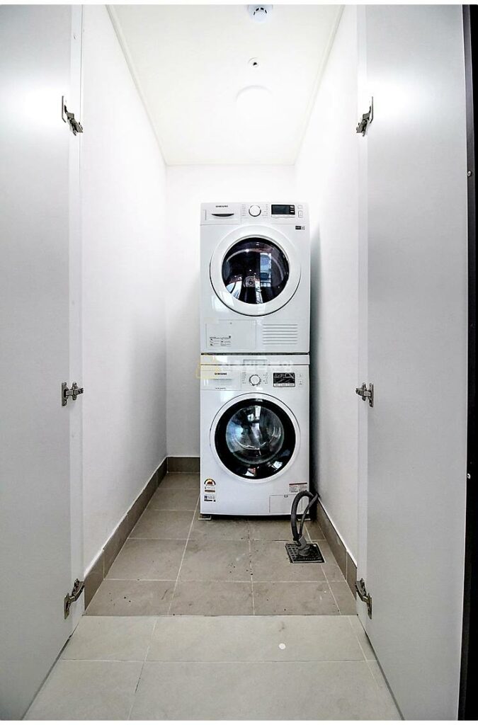 세탁기와 건조기가 기본으로 설치되어 있어서 별도 구매가 필요 없어요. 화장실 옆 수납공간은 청소용품이나 생활용품 보관하기 딱 좋은 크기랍니다.