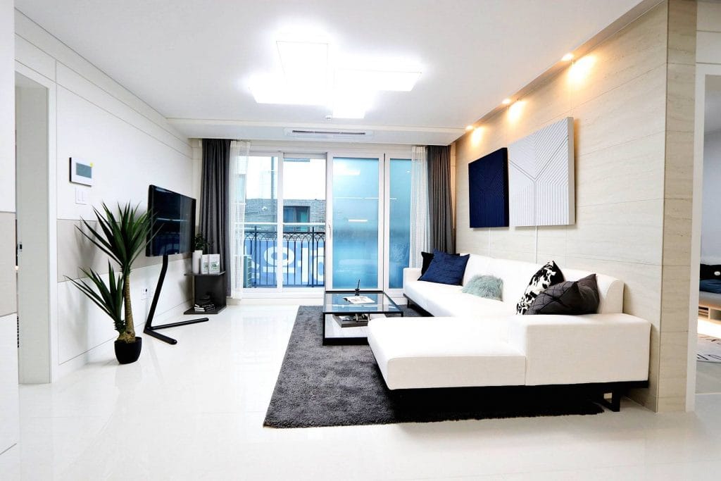 6인카우치 소파를 여유있게 둘 수 있는 공간이 나오네요.