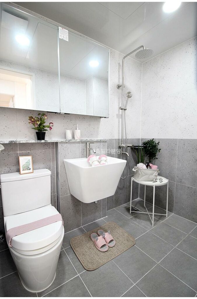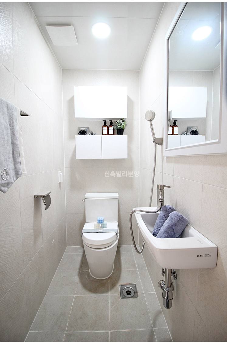 욕실 샤워 파티션이 없어 물 튐 방지를 위한 추가 시공이 필요할 수 있으며, 안방 욕실은 크기가 컴팩트한 편입니다. 입주 전 확인하시기 바랍니다.