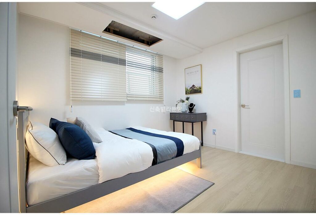 모든 침실이 정방형 구조로 설계되어 가구 배치에 제약이 없습니다. 안방과 중간방에는 시스템 에어컨이 기본으로 설치되며, 각 방을 독립적인 공간으로 사용하기에 적합한 환경입니다. 방 크기가 충분하여 침대와 책상, 수납장 등을 무리 없이 배치할 수 있습니다.