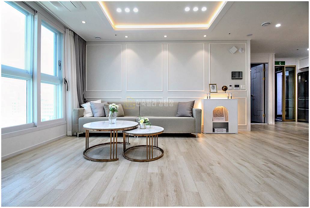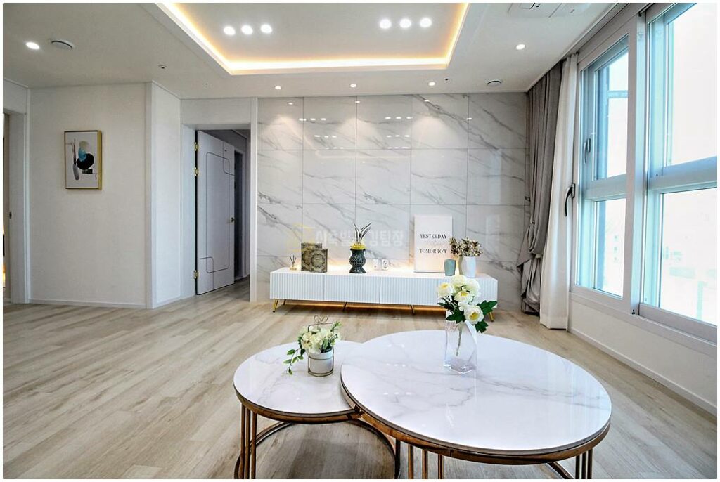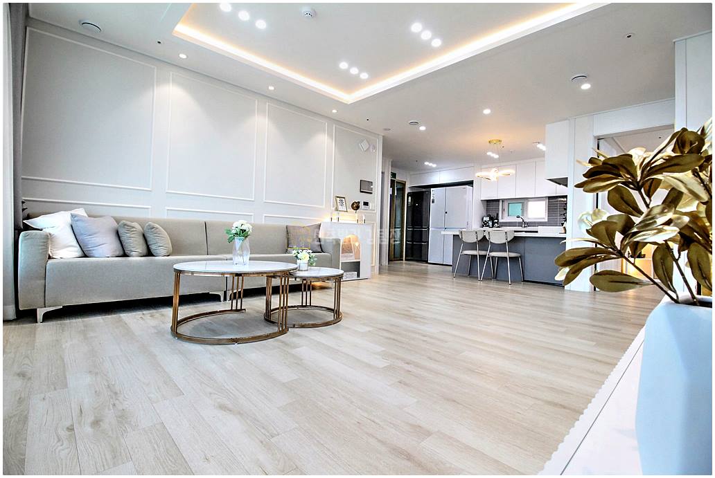 거실은 3인 이상 소파를 배치하고도 TV 시청 거리가 넉넉한 크기로, 가족이 함께 모여 편안한 시간을 보내기에 충분합니다. 🛋️