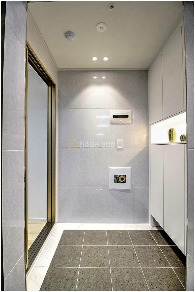1층 필로티 주차장과 지하주차장이 완비되어 있으며, 세대당 100% 비율로 주차가 가능합니다. 🚗 비가 오는 날에도 젖지 않고 편리하게 이동할 수 있습니다. 현관에는 중간 선반형 신발장이 설치되어 인테리어 소품이나 외출 용품을 두기 좋고, 유리 중문이 시공되어 답답하지 않은 개방감을 제공합니다.