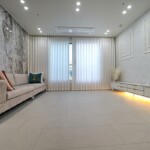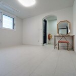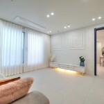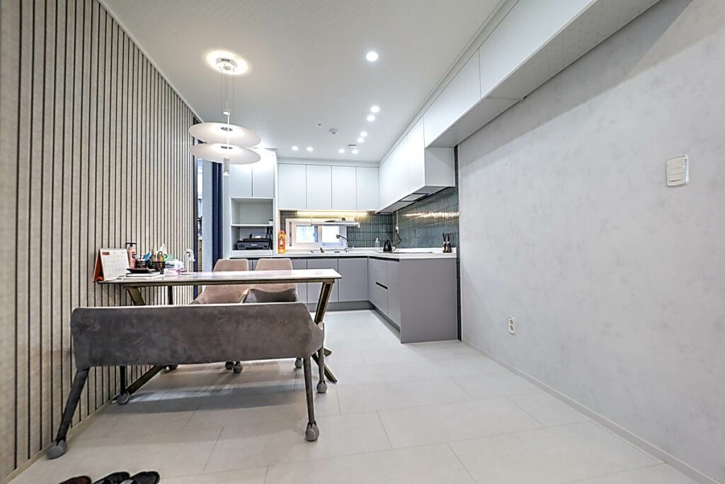 안양동신축빌라 화이트 톤과 웨인스코팅 포인트로 꾸며진 거실은 밝고 모던한 느낌이 강해요.