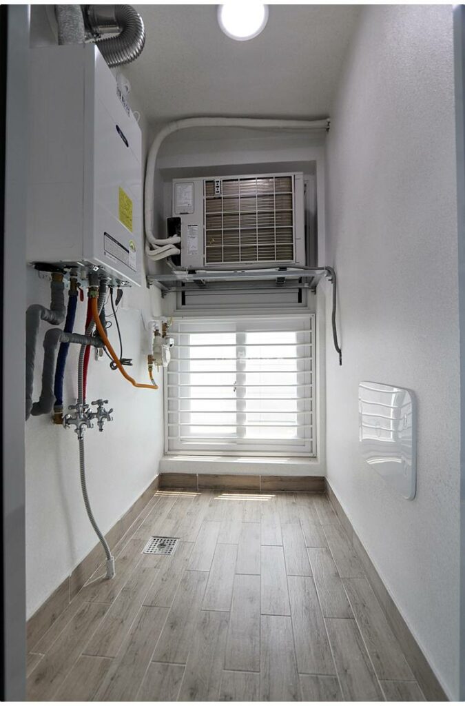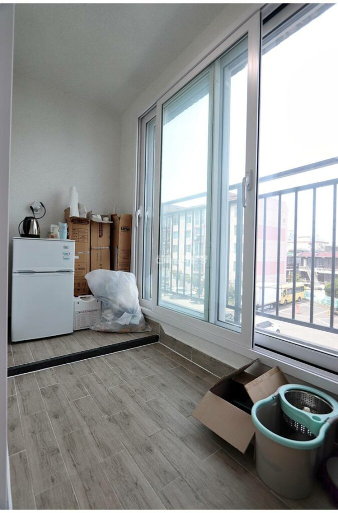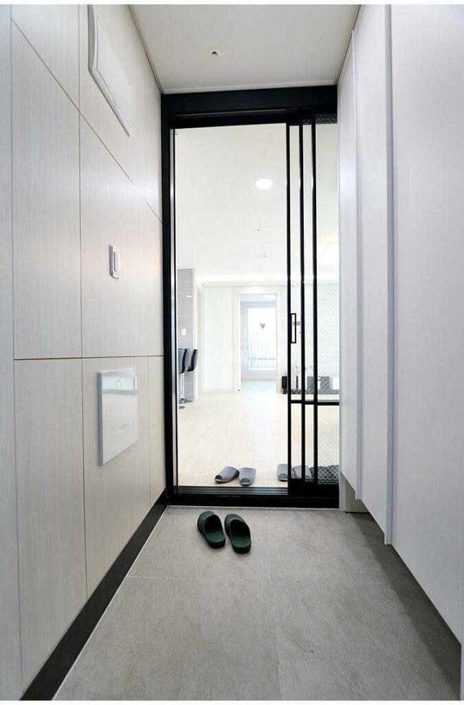 집의 입구에는 중문과 일괄소등 스위치, 신발장이 기본으로 설치되어 있습니다. 두 개의 발코니 중 하나는 세탁기와 건조기를 놓고 세탁실로 사용할 수 있으며, 다른 하나는 수납공간으로 활용하기 좋습니다.