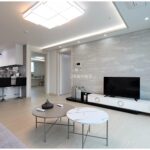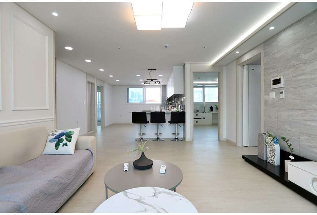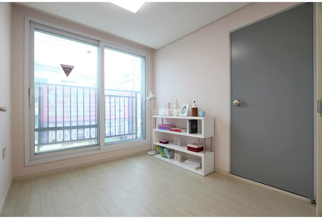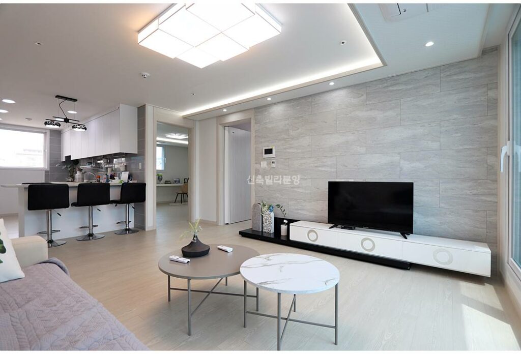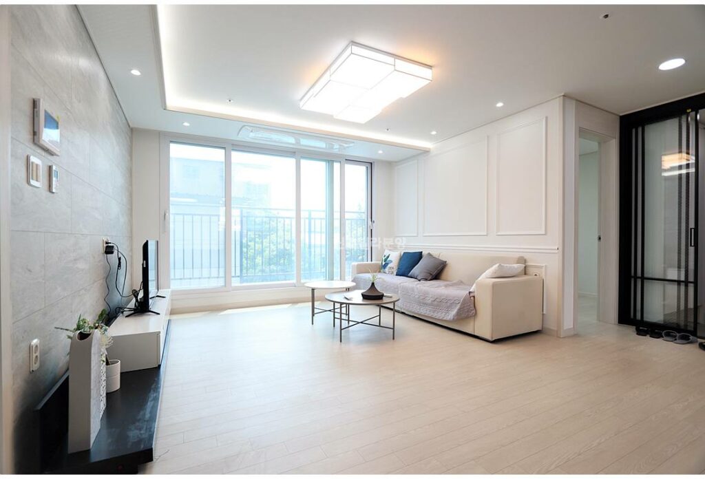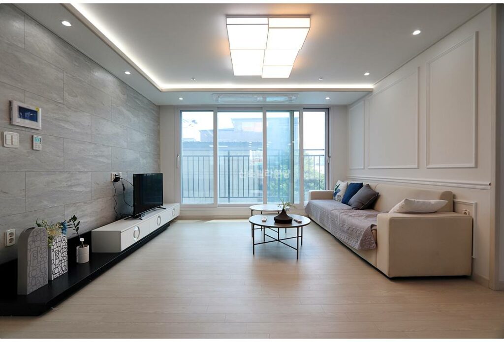 흰색 톤으로 마감되어 깔끔하면서도 고급스러운 분위기를 연출합니다. 텔레비전과 소파 사이의 거리가 넉넉해 시청 시 눈의 피로를 줄여줍니다. 냉난방 시스템이 설치되어서 사계절 편안한 온도를 관리할 수 있습니다.