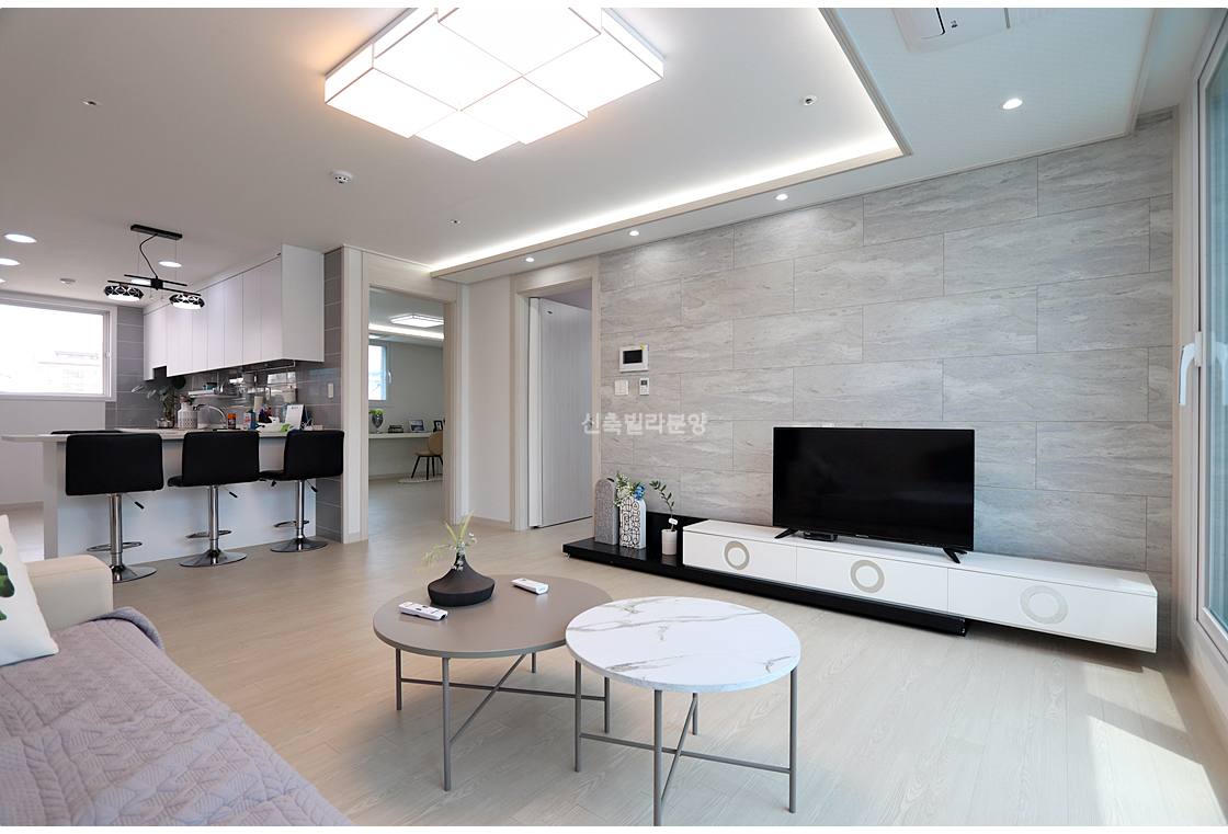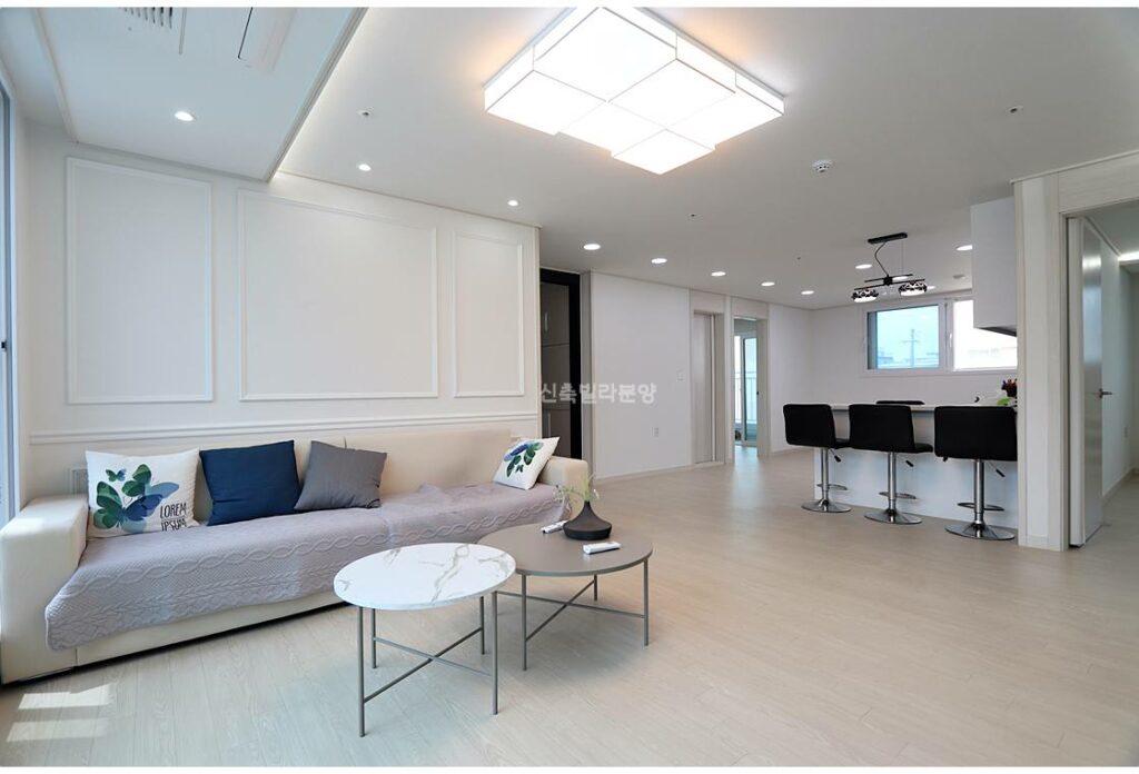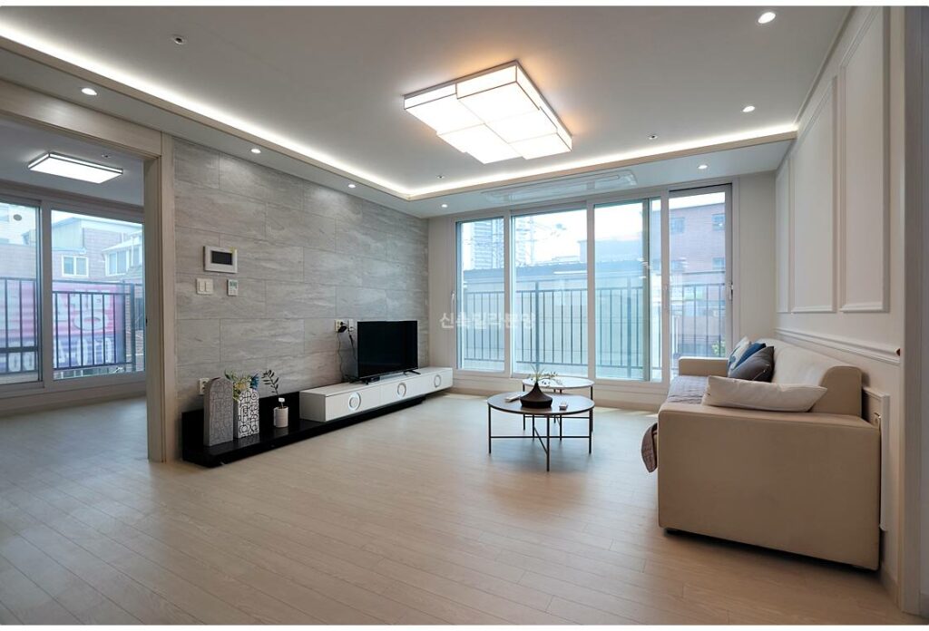 가능동신축빌라 개방형 구조로 설계된 거실은 넓고 시원한 공간감을 자랑합니다. 창밖으로 탁 트인 전망과 함께 풍부한 햇빛이 들어와 밝고 쾌적합니다. 네다섯 명의 가족이 함께 생활하기에 넉넉한 크기입니다.