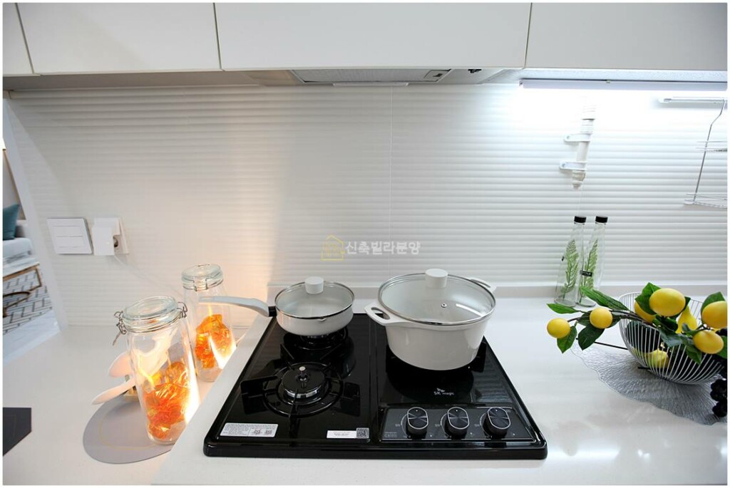 3구 가스쿡탑과 템바보드 벽타일로 기능성과 세련미 동시 충족