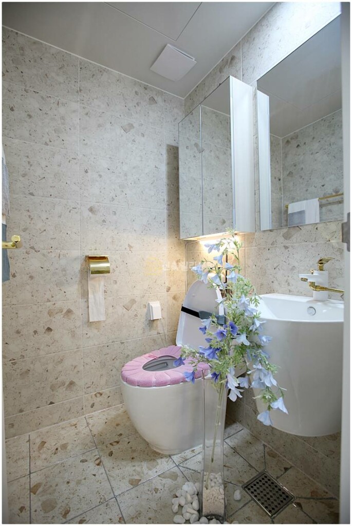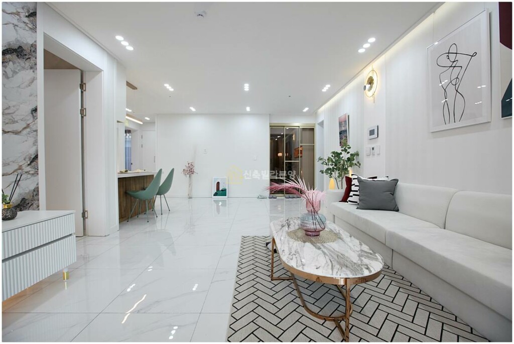 평택신축빌라 마블 패턴의 고급스러운 아트월 타일과 폴리싱 바닥재로 모던함 연출